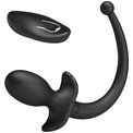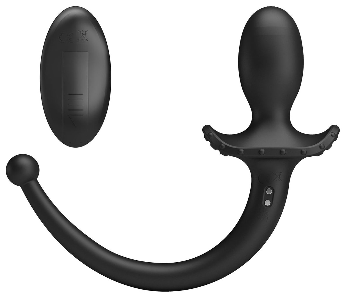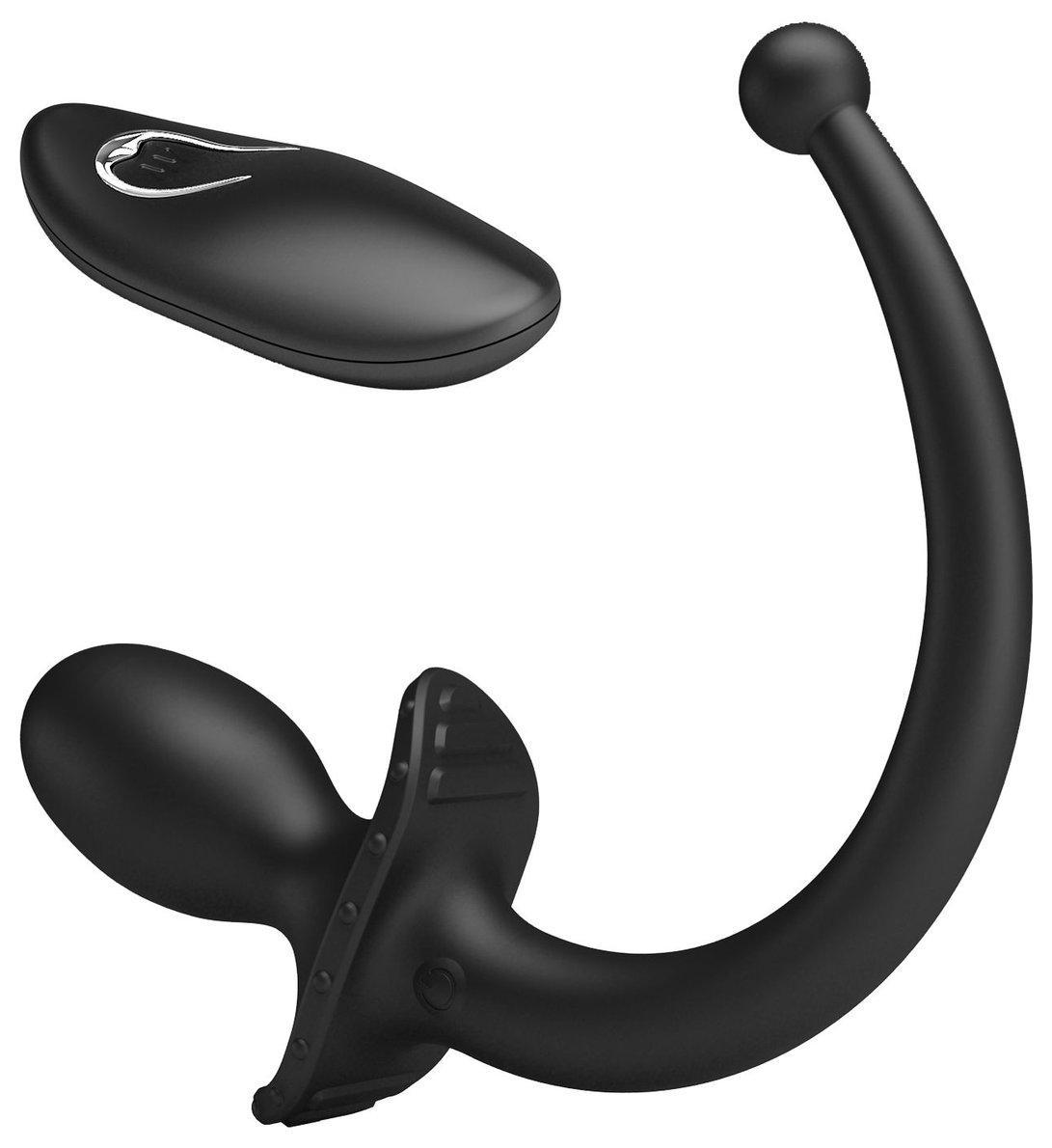 Черная анальная вибропробка с хвостом и пультом ДУ