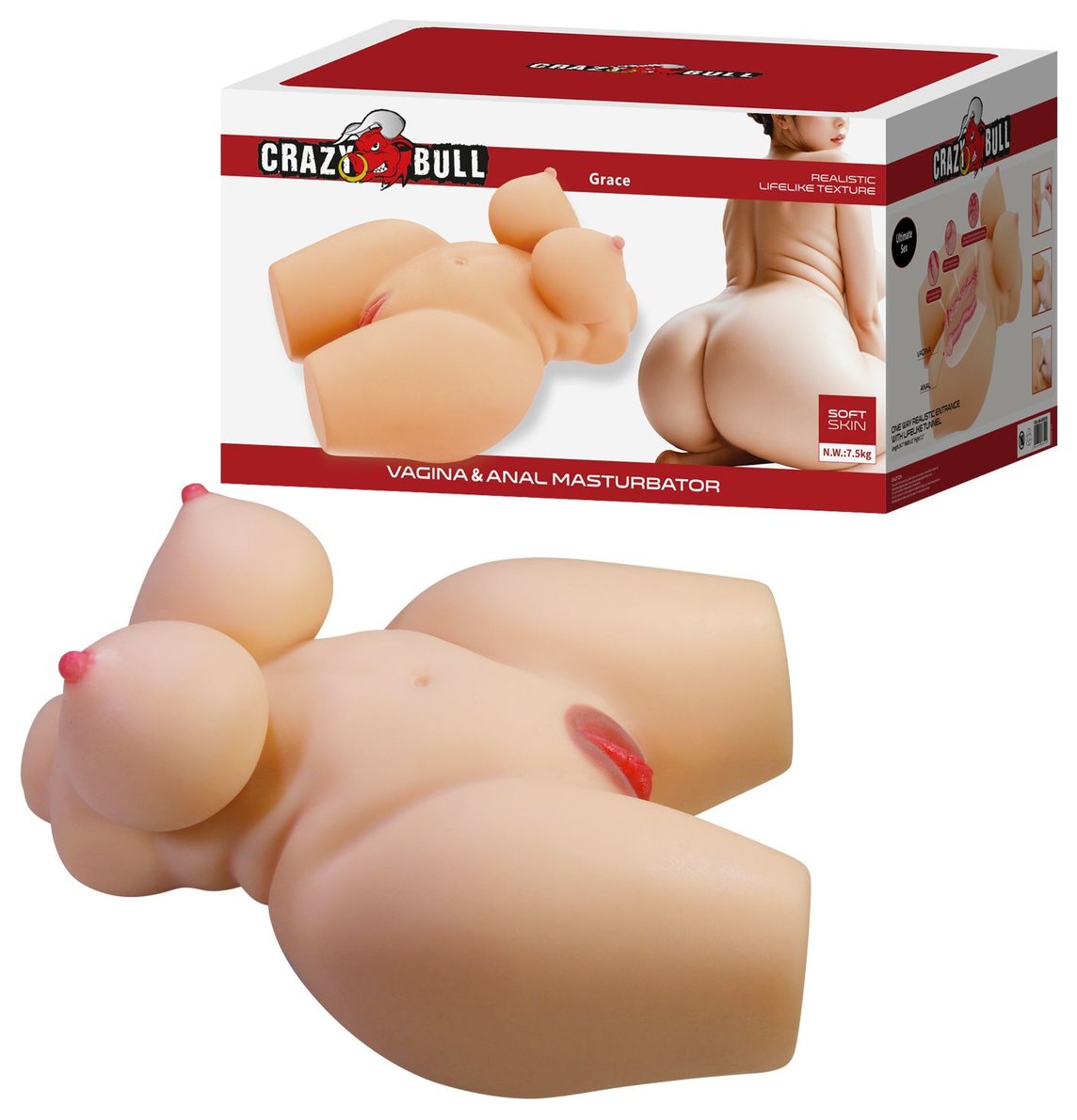 Создан с использованием передовой технологии Soft Skin, этот стимулятор имеет анатомически точную форму, реалистичную текстуру и живую упругость, максимально приближенные к настоящим ощущениям. Благодаря полноразмерному исполнению и весу около 7.5 кг изделие обеспечивает естественные, погружающие ощущения и устойчивость при использовании. Изготовлен из безопасного для тела материала TPR, легко очищается и не требует особого ухода. 2 рабочих тоннеля - вагина и анус. Идеальный выбор для тех, кто ищет реалистичный, полноразмерный опыт и натуральные ощущения.