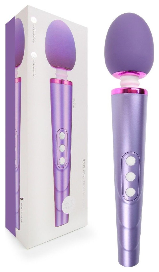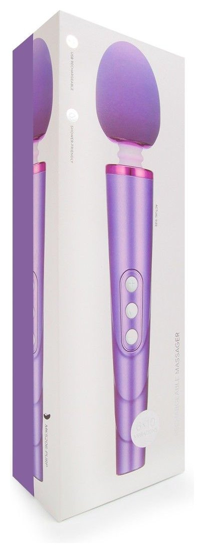 Сиреневый жезловый вибромассажер с головкой на гибкой шее. Перезаряжаемый. Имеет 6 режимов вибрации.