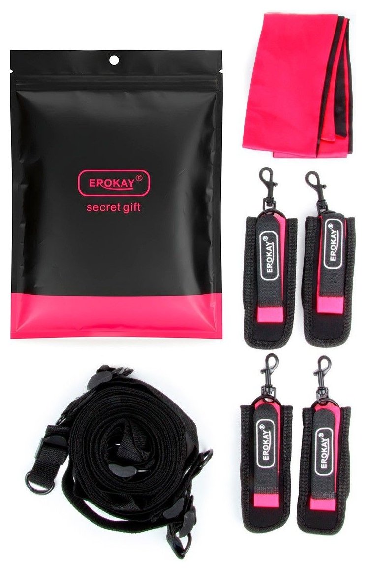 Черно-розовый эротический набор: фиксатор, оковы, наручники, повязка. Зафиксируйте партнера на кровати при помощи фиксатора, оков и наручников. Предварительно повяжите вокруг его головы повязку. Игра началась! В комплекте: фиксатор, оковы, наручники, повязка.