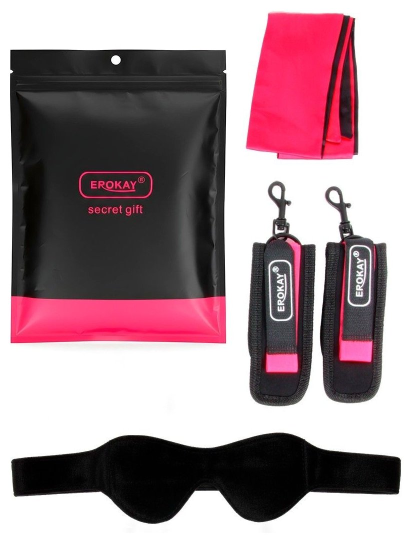 Черно-розовый эротический набор: маска, наручники и повязка. Устройте незабываемый вечер! В комплекте: маска, наручники и повязка.