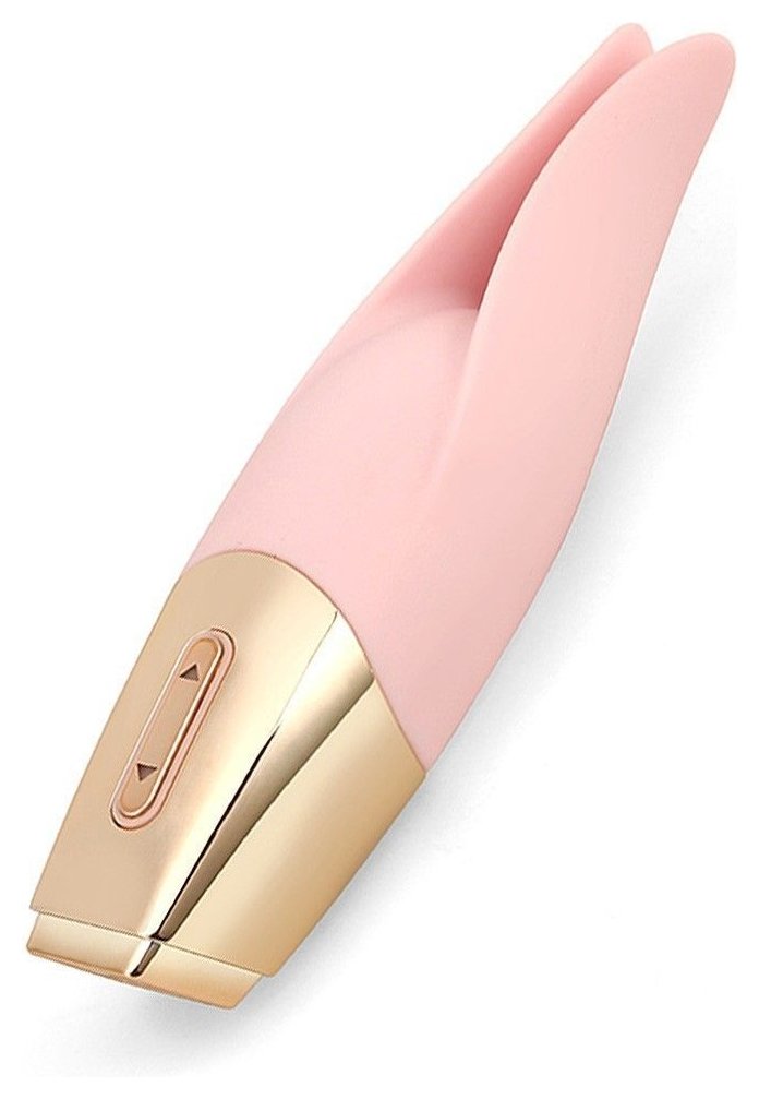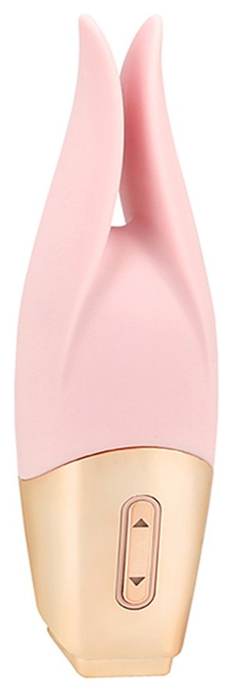 Нежно-розовый мини-вибратор с раздвоенным кончиком - 12,3 см
