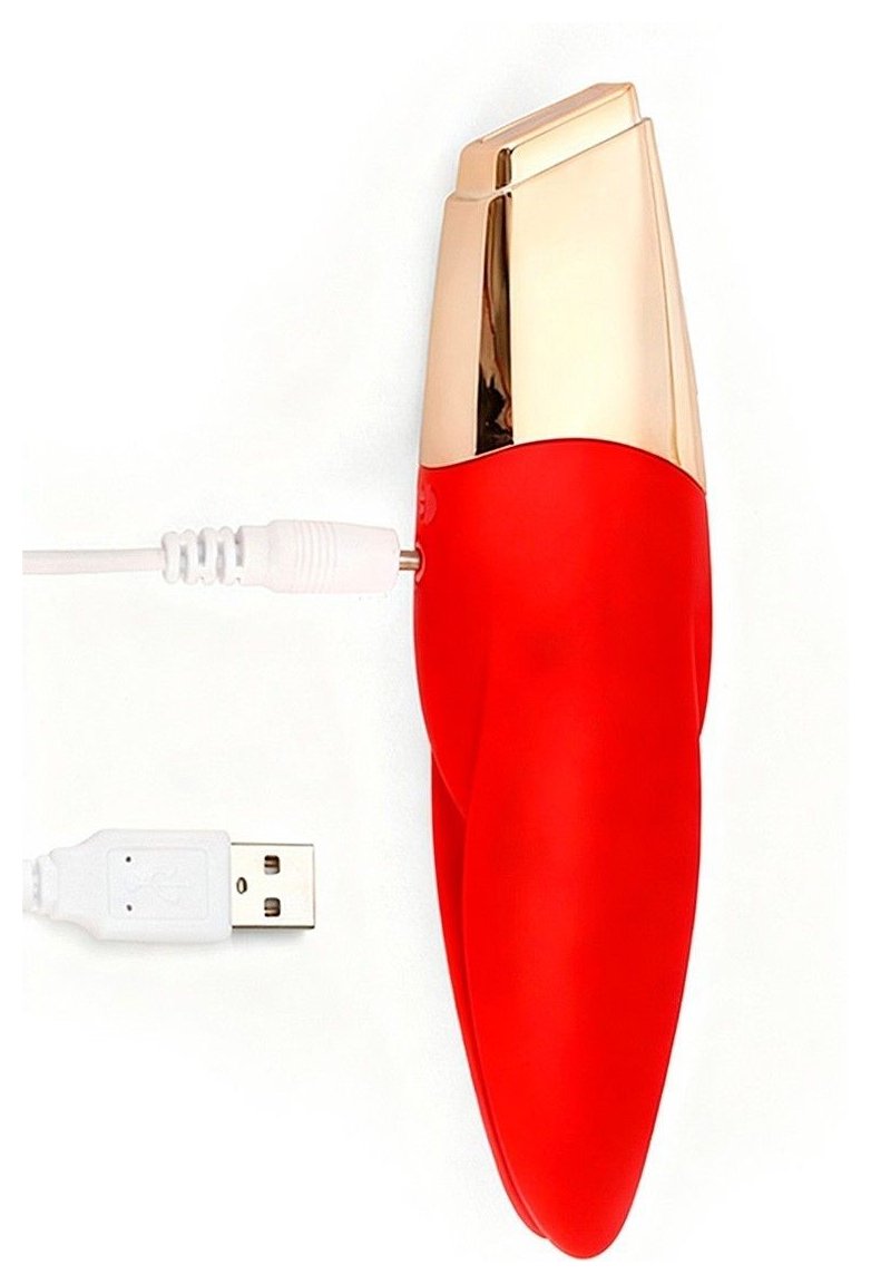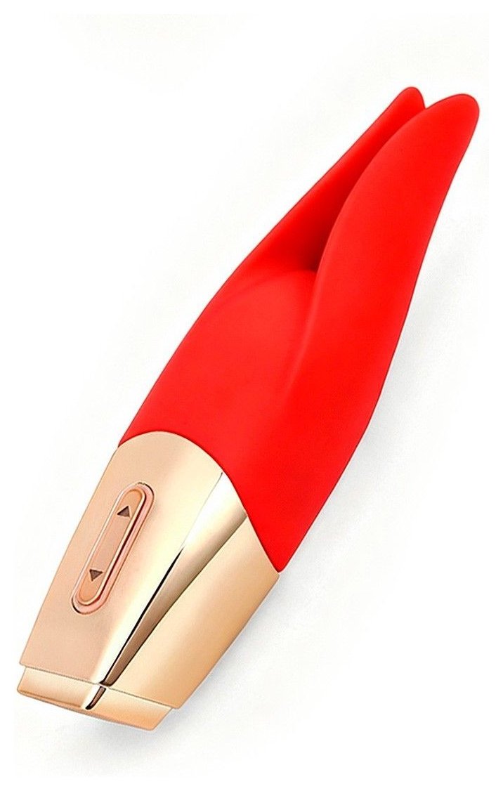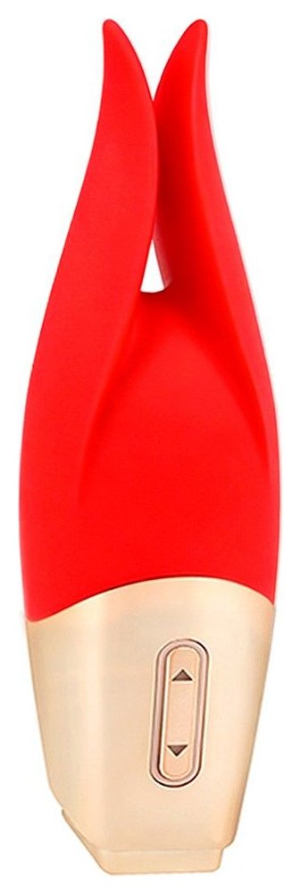 Красный мини-вибратор с раздвоенным кончиком - 12,3 см