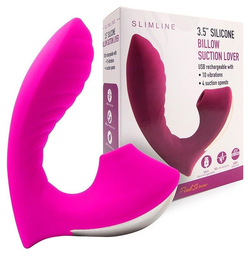 Ярко-розовый вибромассажер с вакуумной стимуляцией клитора