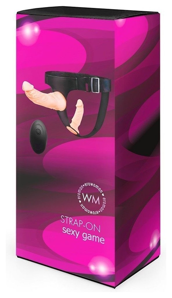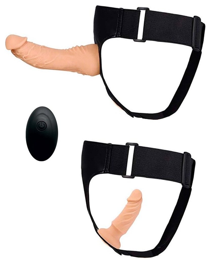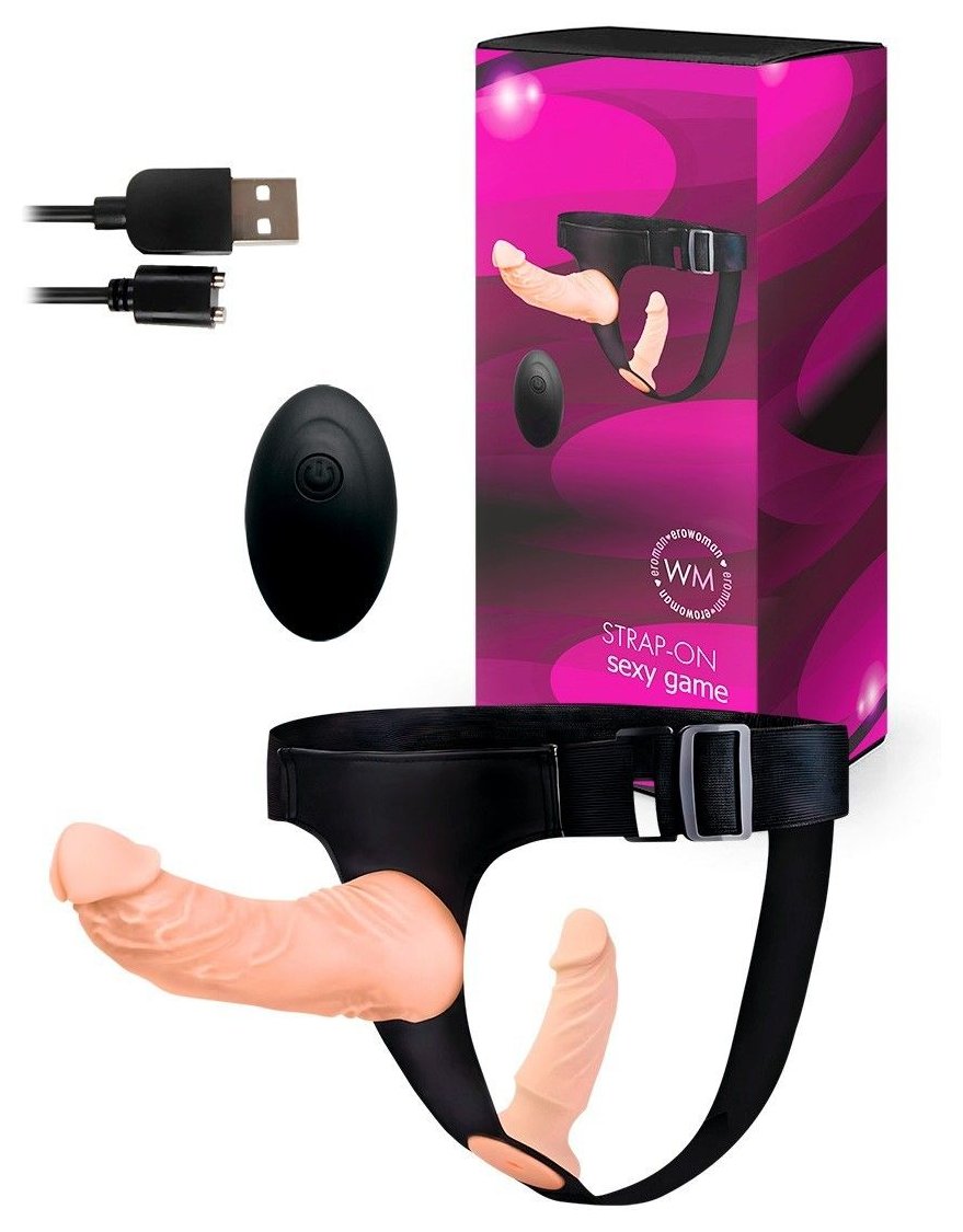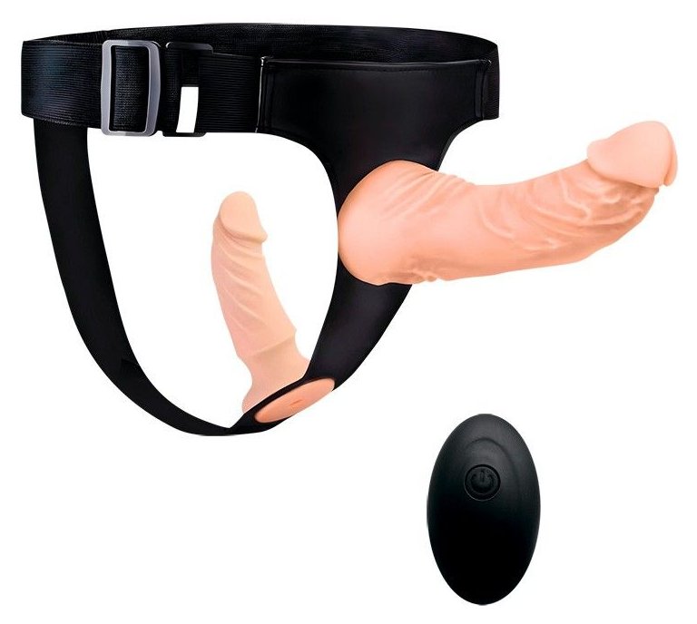 Женский страпон с 2 насадками, вибрацией и пультом ДУ