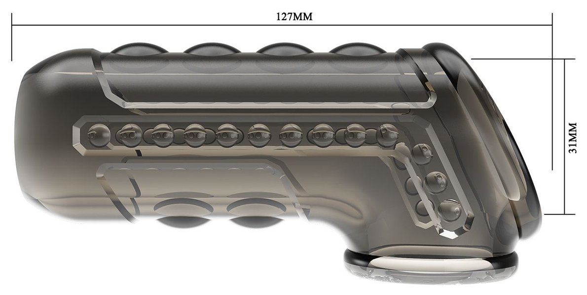Насадка на пенис с отверстием для мошонки увеличит диаметр члена подарит дополнительную стимуляцию партнерше за счет внешнего рельефа. Насадка не будет снижать чувствительность, поскольку головка остается открытой.