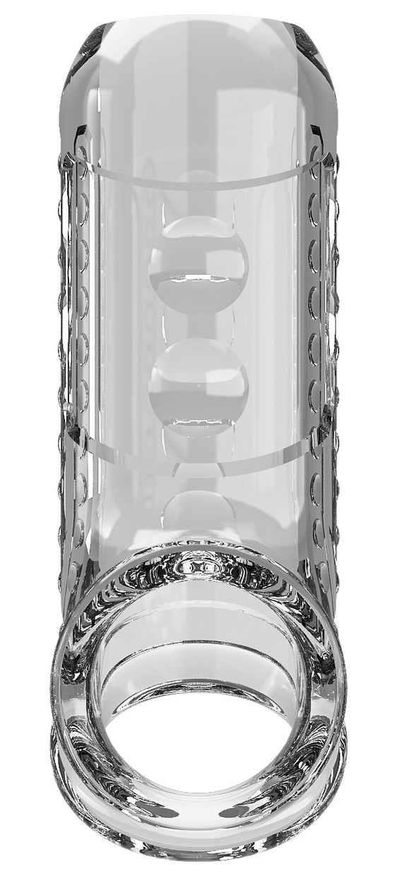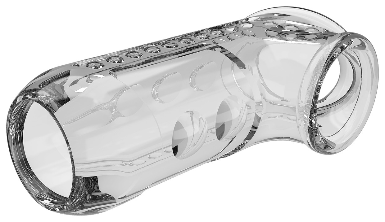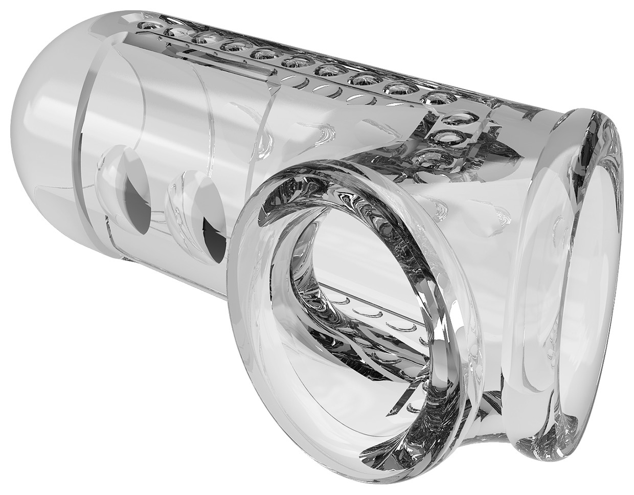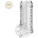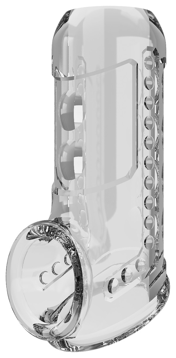 Насадка на пенис с отверстием для мошонки увеличит диаметр члена подарит дополнительную стимуляцию партнерше за счет внешнего рельефа. Насадка не будет снижать чувствительность, поскольку головка остается открытой.