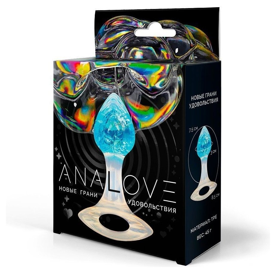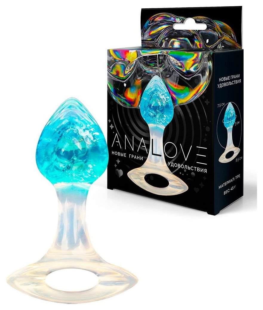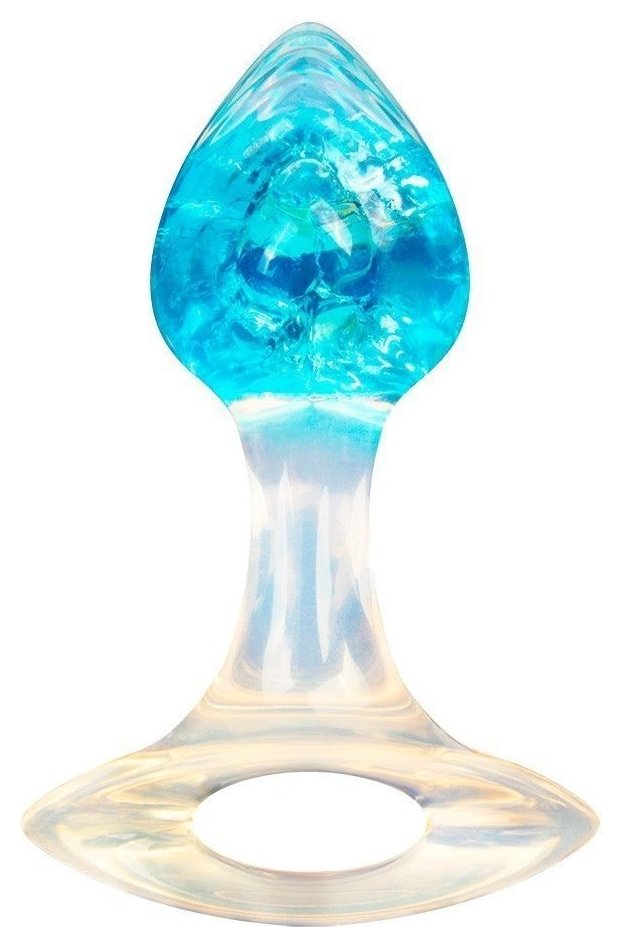 Голубоватая анальная пробка с ручкой - 8,5 см