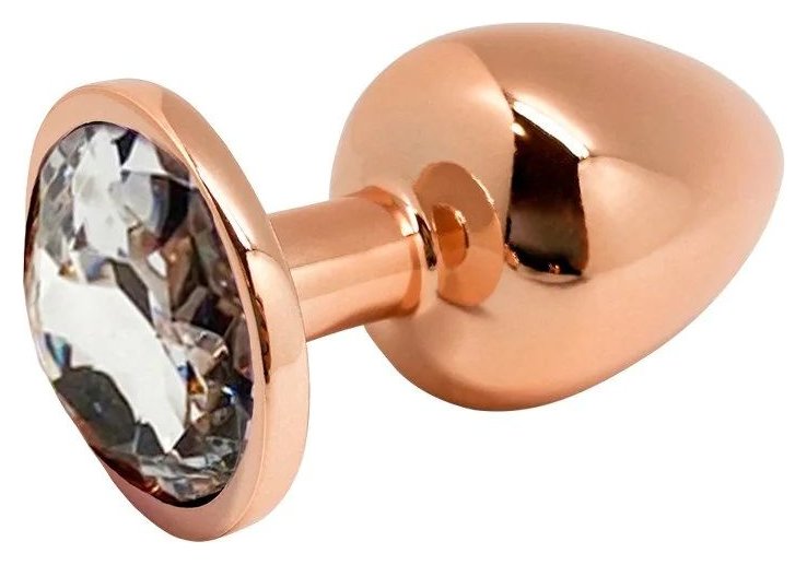 Золотистая анальная втулка Wooomy Tralalo L с прозрачным кристаллом - 9 см