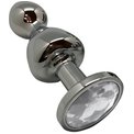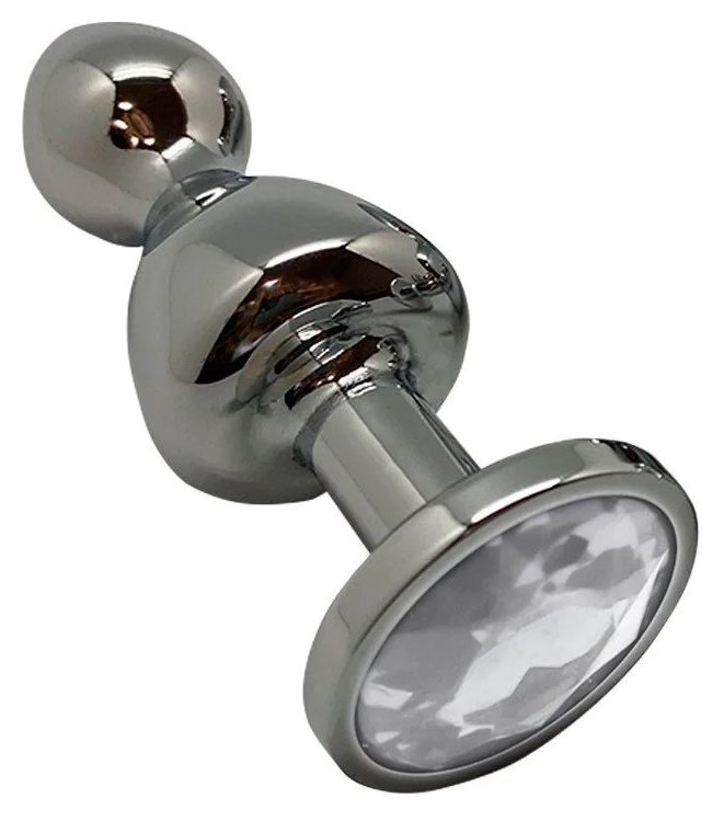 Серебристая анальная втулка Wooomy Lollypop M с прозрачным кристаллом - 9,4 см