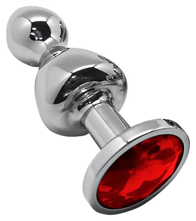 Серебристая анальная втулка Wooomy Lollypop M с красным кристаллом - 9,4 см
