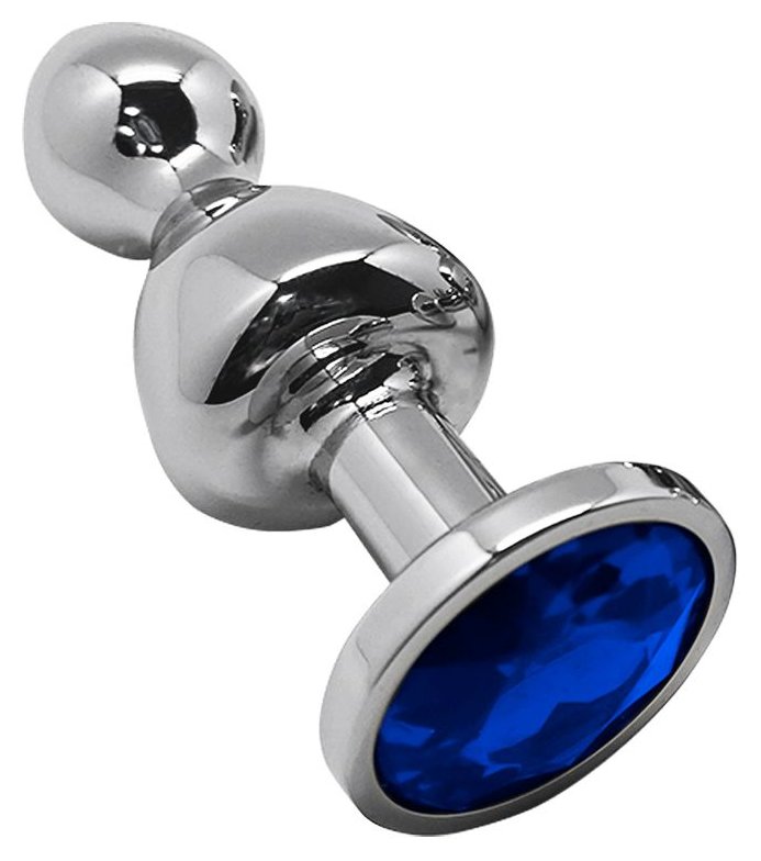Серебристая анальная втулка Wooomy Lollypop L с синим кристаллом - 10,5 см
