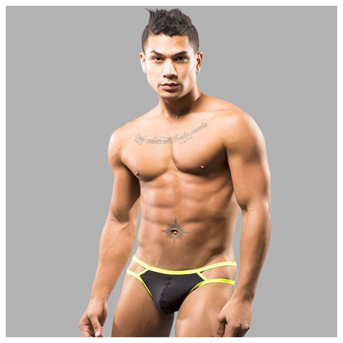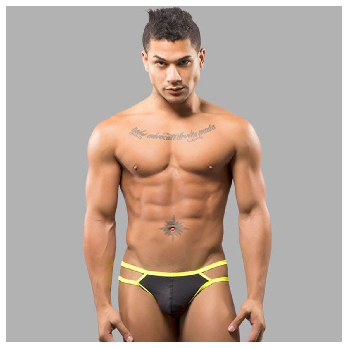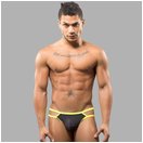 Черные мужские трусы-стринги с 2 боковыми бретелями.