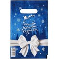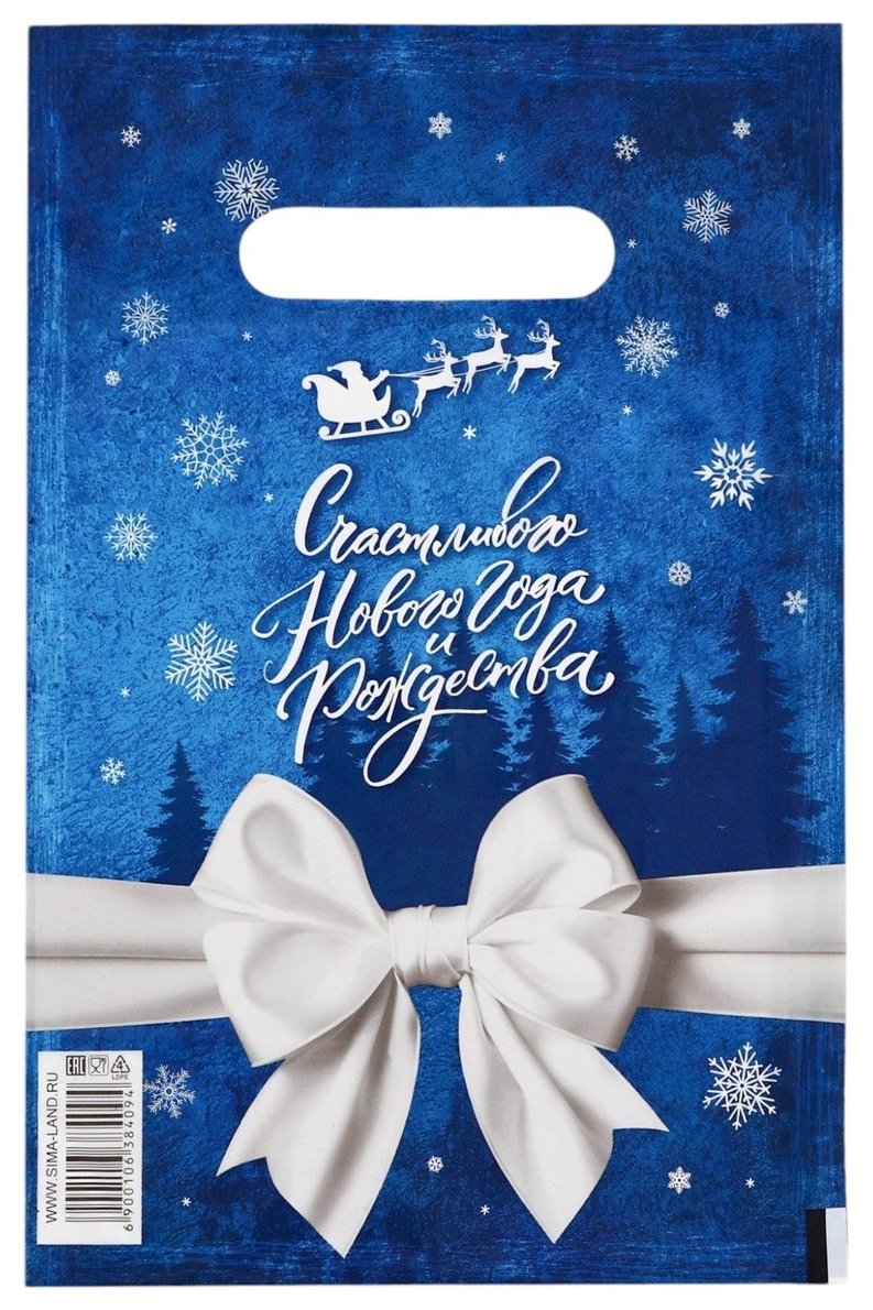 Сине-белый подарочный новогодний пакет с вырубной ручкой (20х30 см).