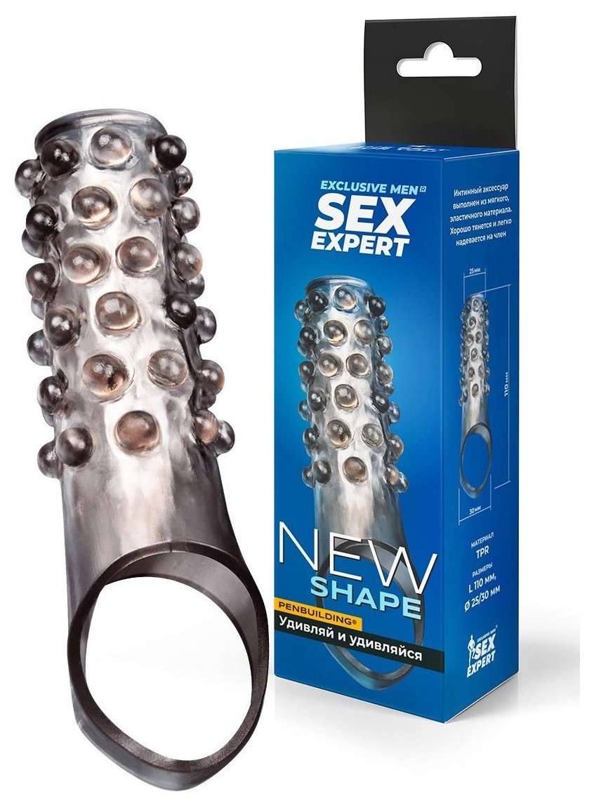 Дымчатая насадка на пенис с выпуклостями - 11 см