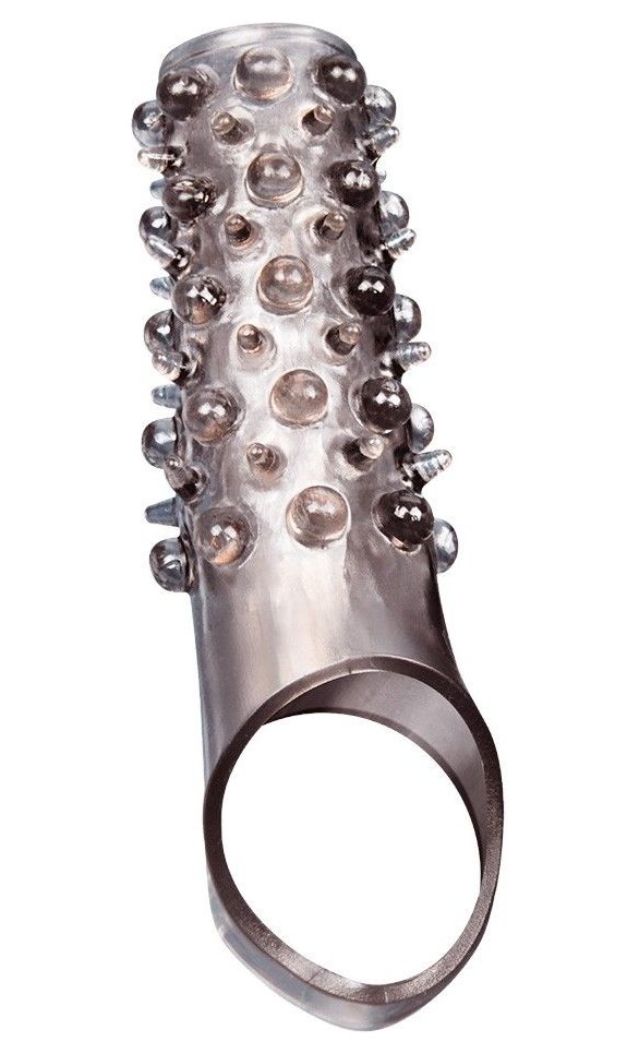 Дымчатая насадка на пенис с шипами и выпуклостями - 12 см