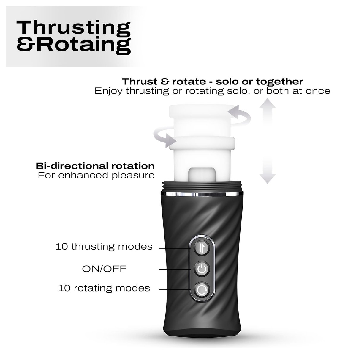 Thrust Blow Pro — это гармония высоких технологий и изысканного удовольствия, где каждая деталь создана для вашего абсолютного комфорта и невероятных ощущений. Уникальная технология полного погружения: Держатель для смартфона — Создайте идеальный иммерсивный опыт. Закрепите ваше устройство и позвольте визуальному контенту оживать в синхронизации с физическими ощущениями. Двойная система стимуляции — Глубокие поступательные движения (10 режимов) в сочетании с двунаправленным вращением (10 режимов) дарят бесконечную палитру ощущений. Двойная технология: поступательные движения вращение. Регулируемый держатель для смартфона в комплекте. 20 программ работы (10 10 режимов). Усовершенствованная эргономика и материалы. Магнитная зарядка. Рабочая длина - 15 см.