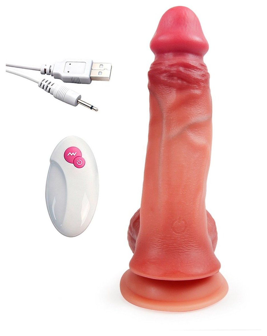 Телесный вибратор-реалистик с присоской и пультом ДУ - 25,5 см