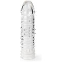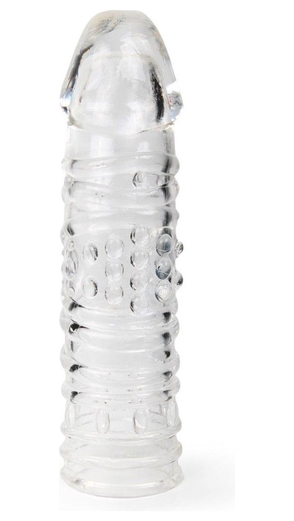 Прозрачная насадка на пенис для увеличения длины и толщины полового члена. Поможет мужчине избавится от комплексов и почувствовать себя настоящим мачо, а его партнёрше подарит множество потрясающих эмоций и незабываемый оргазм. Ярко выраженная мягкая головка, рельефная поверхность с разнообразными выпуклостями и шипиками за счёт трения о стенки влагалища или ануса усилит возбуждение женщины. Интимный аксессуар изготовлен из эластичного материала. Хорошо мнётся и тянется.