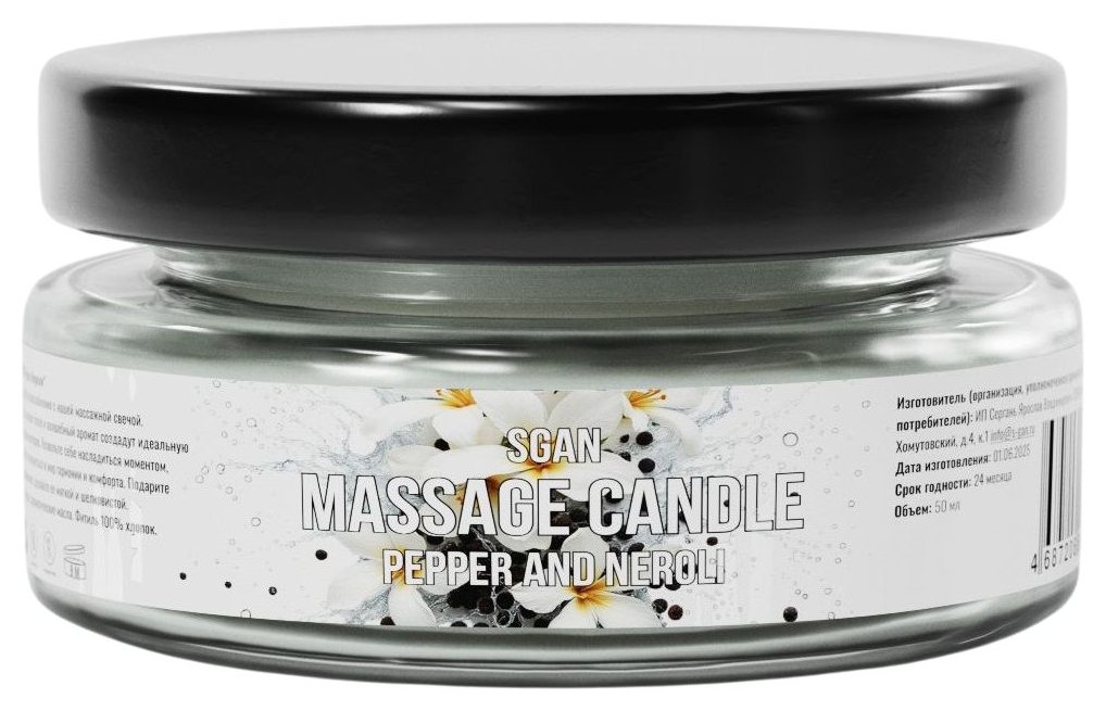 Массажная свеча с ароматом переца и нероли SGAN в стеклянной банке — это натуральное средство для расслабления, ухода за кожей и создания романтической атмосферы. Свеча изготовлена из 100% кокосового воска с добавлением ароматического масла перца и нероли и хлопкового фитиля, что обеспечивает безопасное и чистое горение. При нагревании свеча превращается в тёплое массажное масло, которое глубоко увлажняет, питает и смягчает кожу, делая её шелковистой и ухоженной. Приятный аромат перца и нероли наполняет комнату уютом и гармонией.