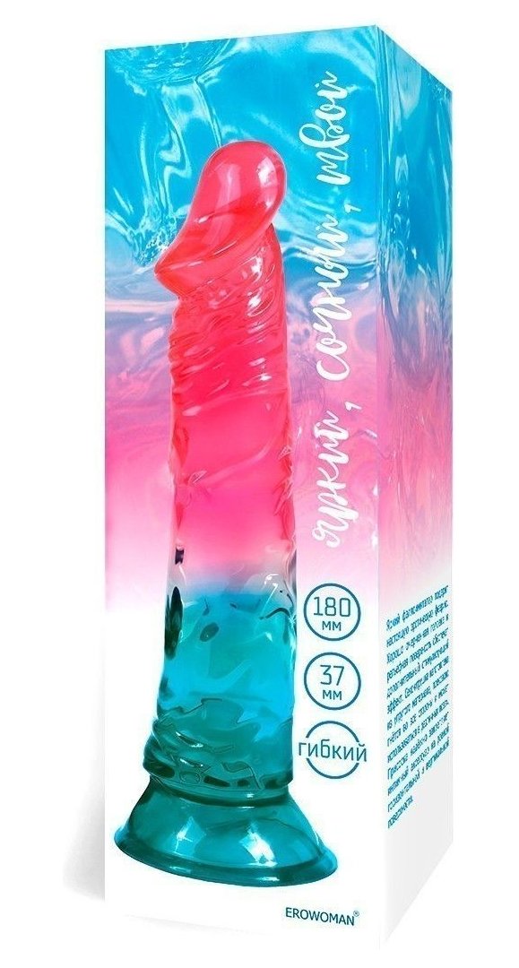 Яркий двухцветный фаллоимитатор с присоской