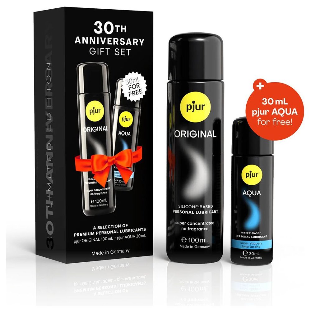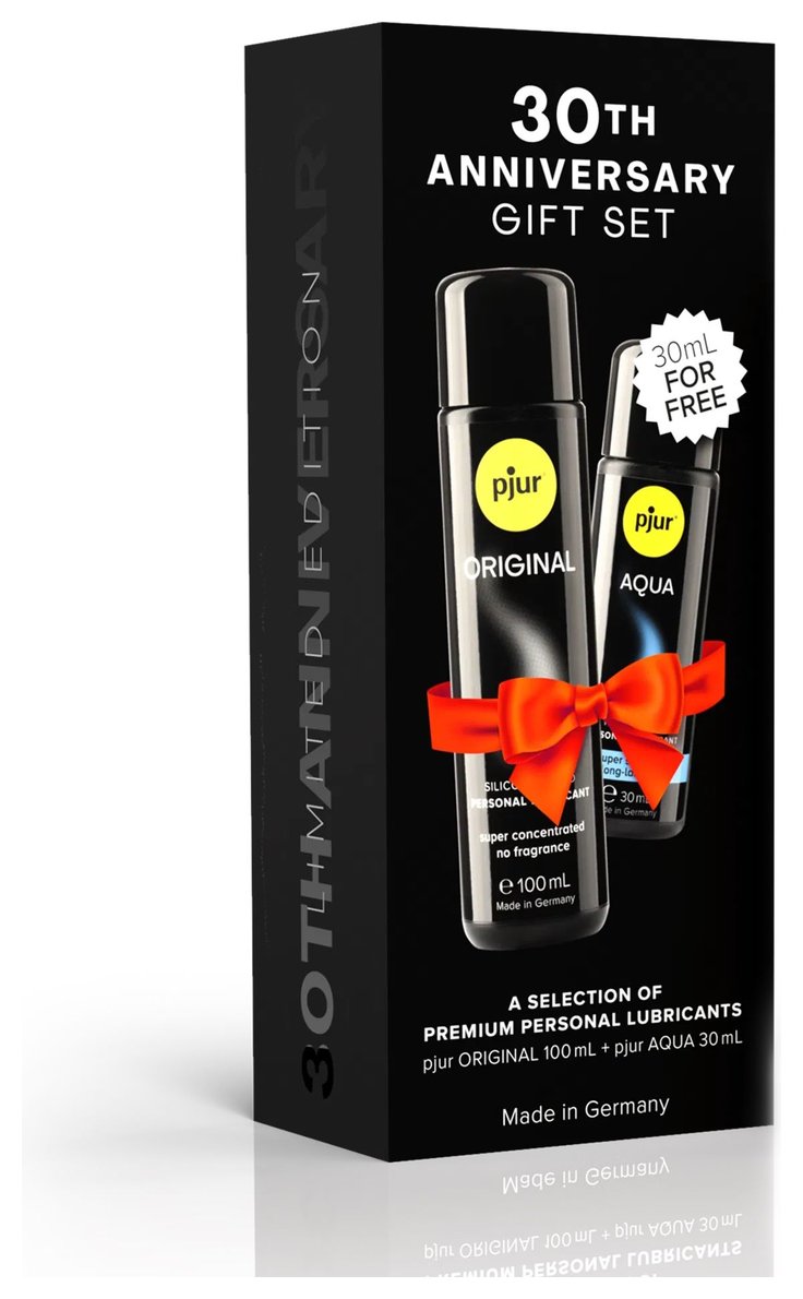 pjur подготовил подарочный набор к 30-летию бренда. 30th Anniversary Gift Set выпущен ограниченным тиражом и создан специально, чтобы вы почувствовали качество лубрикантов от pjur. Что в наборе? 1) Смазка на силиконовой основе pjur Original объемом 100 мл. Одно из ключевых достоинств этого лубриканта на силиконовой основе — экономичность. Всего нескольких капель концентрата Pjur будет достаточно для необходимого увлажнения. В состав смазки, не входят жиры, масла, вода. Именно этим объясняется отсутствие ощущения липкости на коже во время и после использования смазки. 2) Смазка на водной основе pjur Aqua. Базовый интимный гель-смазка от Pjur идеально подходящий для ежедневного использование в паре или во время соло-игр. Максимально чистый и безопасный состав - никаких нефтепродуктов, жиров, масел и парфюмерных добавок. Интимная гель-смазка прекрасно увлажняет кожу, защищает её от микротравм, а также гарантирует отличное скольжение. Не обладает эффектом липкости: не скатывается. В комплекте: pjur Original (100 мл.), pjur Aqua (30 мл.)