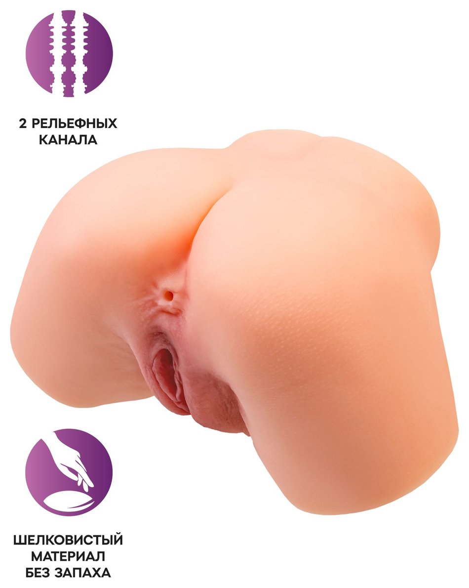 Манящая попка весом 3,7 кг - то, что приятно ощущать в сильных мужских руках.Шелковистый материал напоминает мягкую женскую кожу.Для секса предусмотрено 2 анатомических отверстия с дополнительной стимуляцией: вагинальное и анальное.