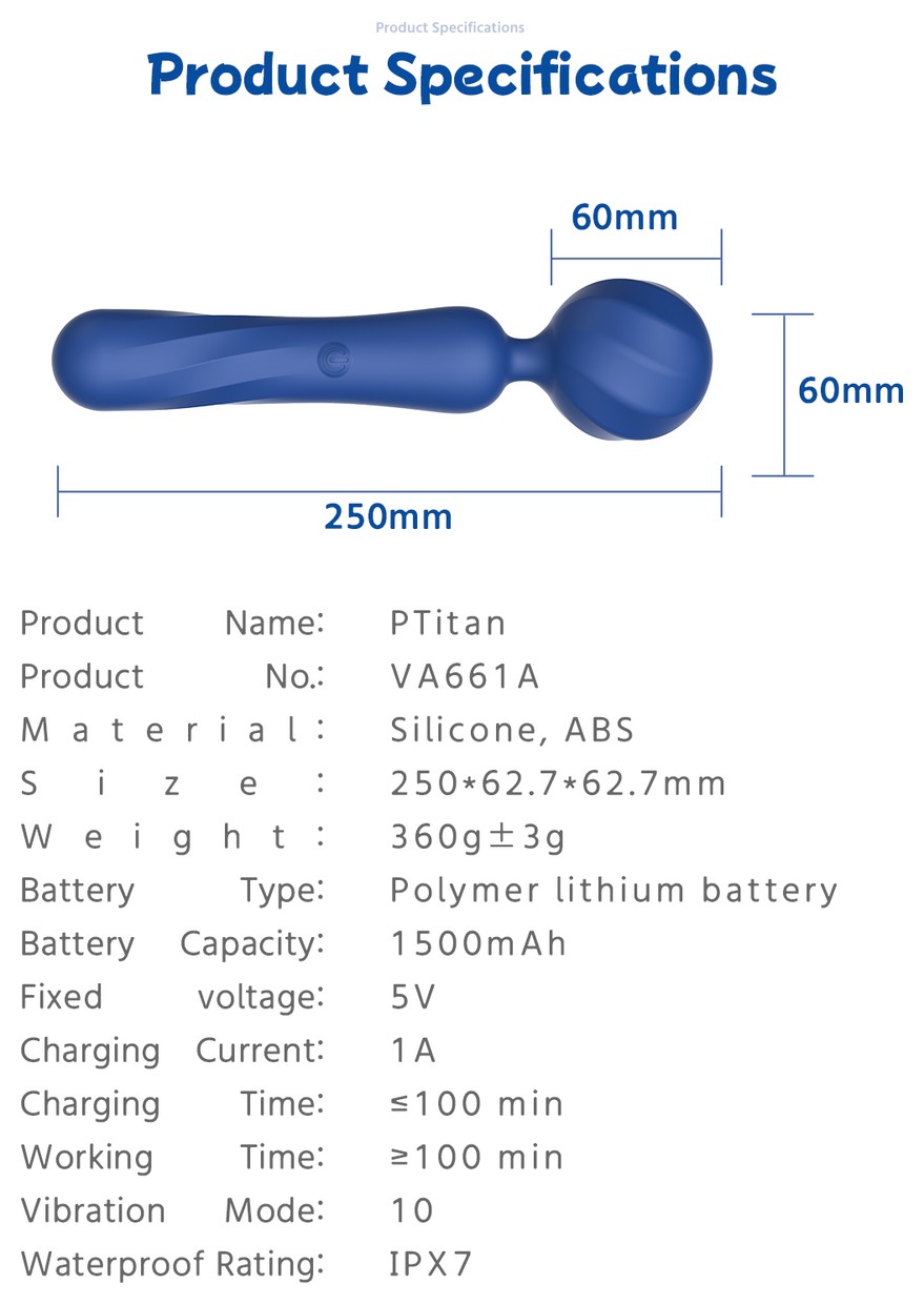 Titan — мощный вибратор Wand для глубокой стимуляции с эргономичным дизайном Сочетает 10 вибрационных режимов разной интенсивности, мощный мотор и анатомическую форму для комфортного использования. Цельный корпус с полным силиконовым покрытием гарантирует безопасность и тактильное удовольствие. Ключевые преимущества: 10 режимов вибрации — от мягких пульсаций до высокоинтенсивных импульсов Эргономичная конструкция — изгибы обеспечивают полный контроль над стимуляцией Автономная работа — до 100 минут непрерывного использования после полной зарядки Водонепроницаемость IPX7 — подходит для использования в душе и ванне Безопасные материалы — медицинский силикон и ABS-пластик