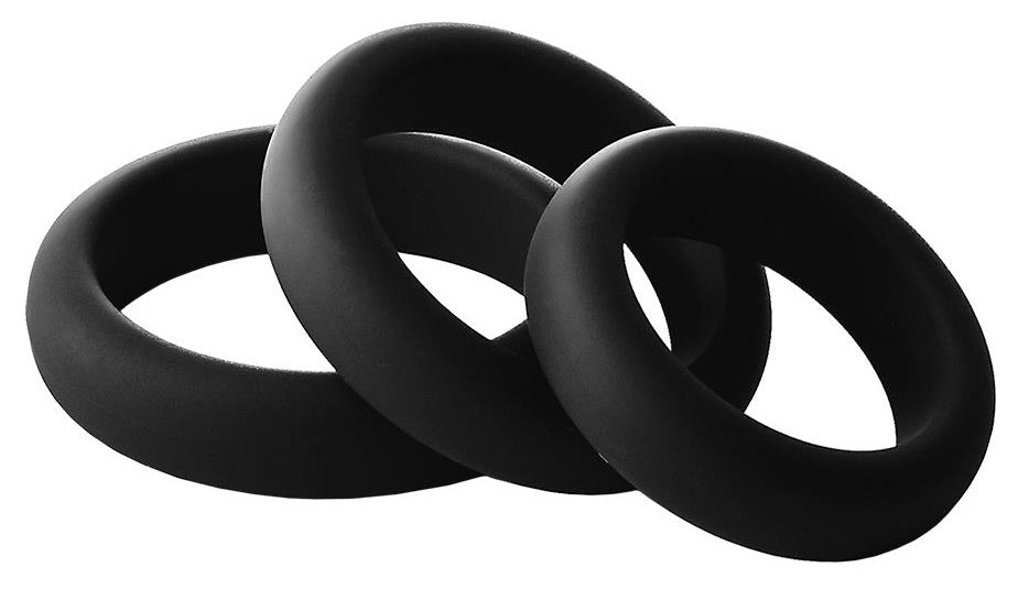 Набор из 3 черных эрекционных колец Smooth Silicone Cockring Pack. Кольца разного диаметра, сделаны из силикона. Диаметр колец - 4, 4,5 и 5 см.
