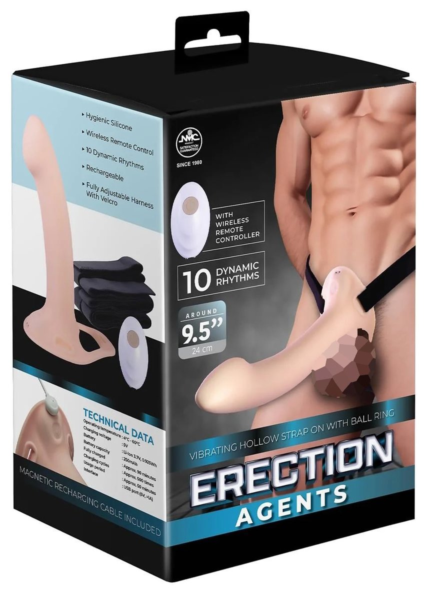Телесный полый страпон с вибрацией Erection Agents - 24,1 см