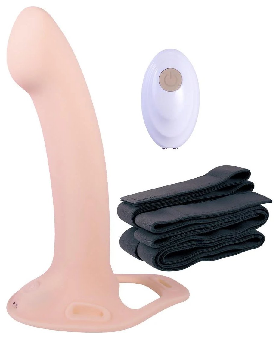 Телесный полый страпон с вибрацией Erection Agents. Регулируемый пояс. вибрация управляется при помощи пульта ДУ (10 режимов).