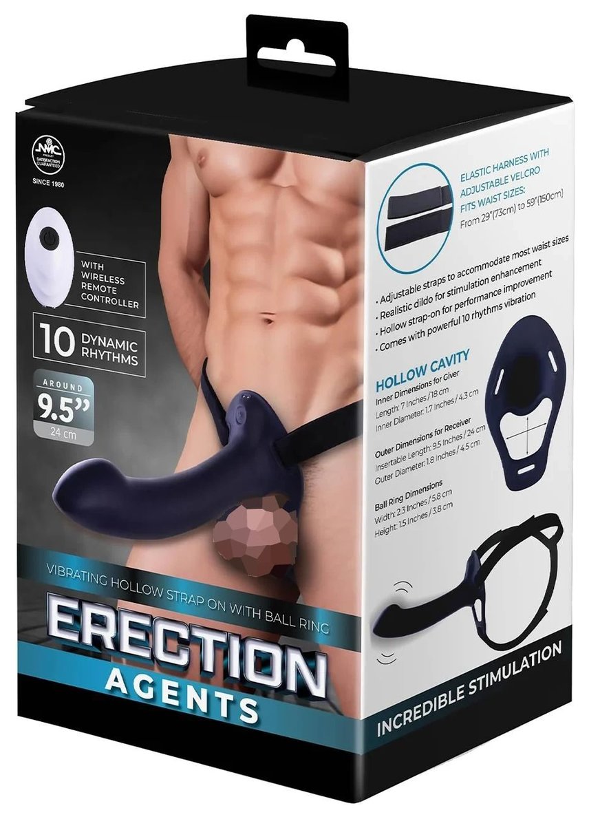 Черный полый страпон с вибрацией Erection Agents - 24,1 см