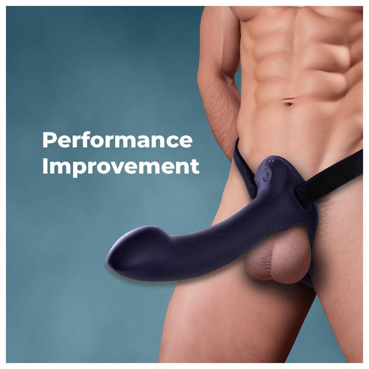 Черный полый страпон с вибрацией Erection Agents. Регулируемый пояс. вибрация управляется при помощи пульта ДУ (10 режимов).