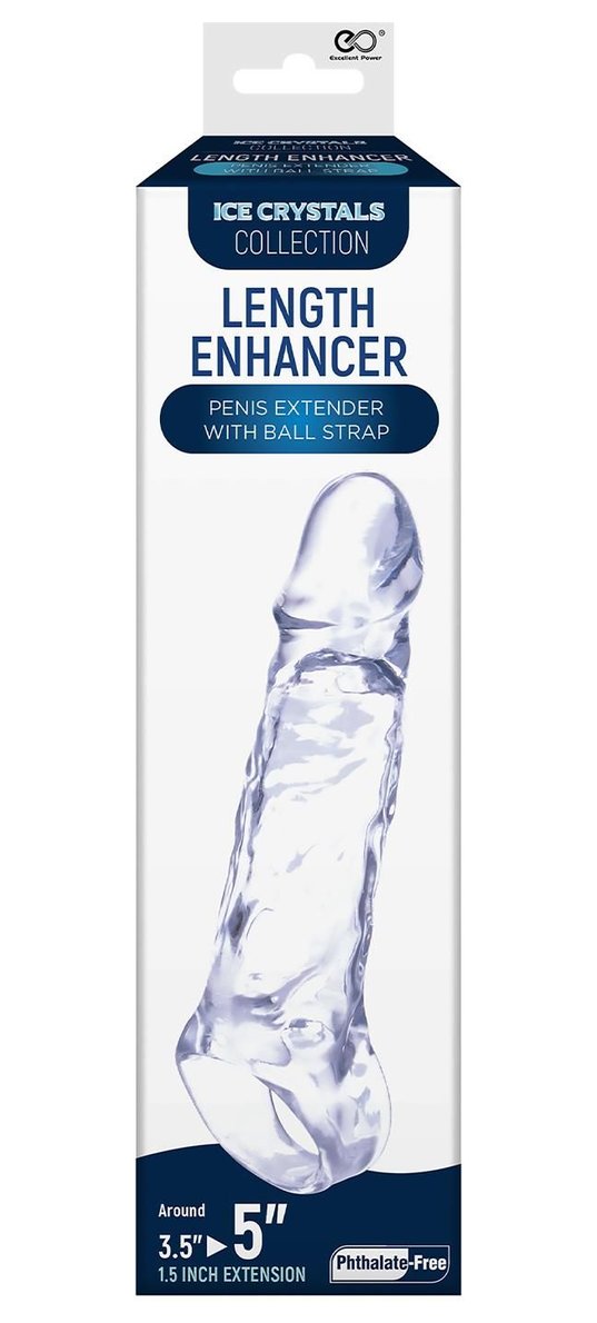 Прозрачная насадка-удлинитель Length Enhancer с подхватом. Эластичная и приятная на ощупь. Длина полости - 8,9 см.