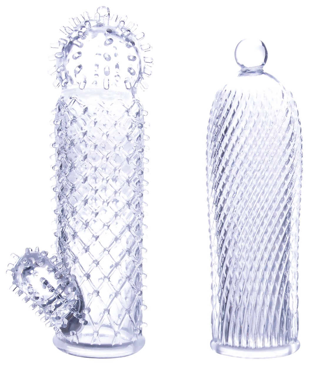 Набор из 2 прозрачных насадок на член Seductive Tickler Sleeves. Длина насадки с шариком на головке - 14 см, диаметр - 3 см. Длина насадки с клиторальным шипом - 13 см, диаметр - 3 см.