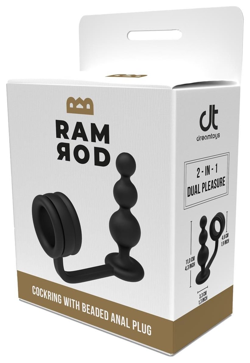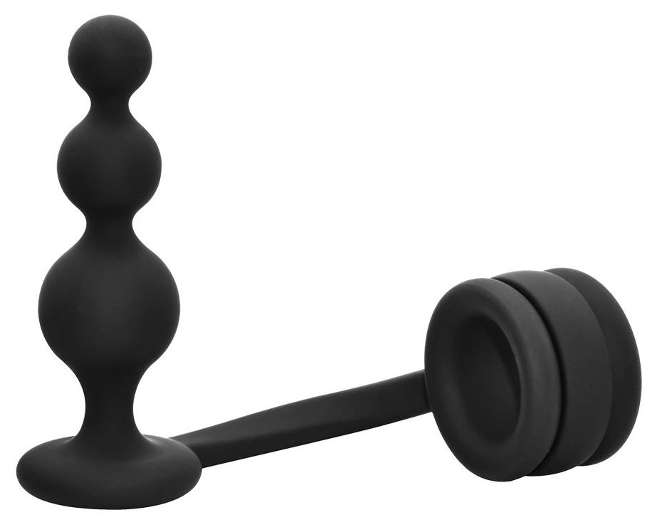 Черное эрекционное кольцо с анальной елочкой Cockring With Beaded Anal Plug.