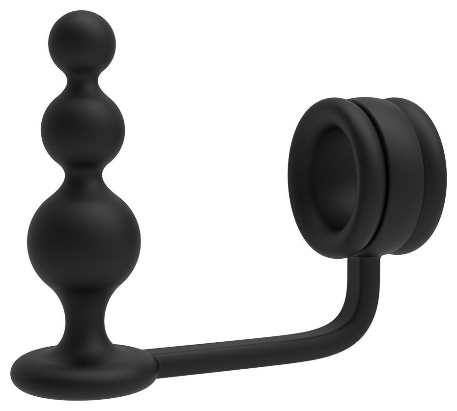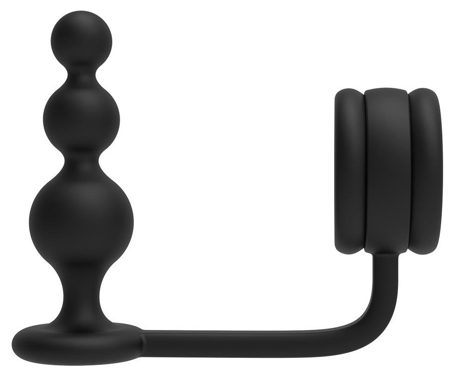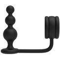 Черное эрекционное кольцо с анальной елочкой Cockring With Beaded Anal Plug