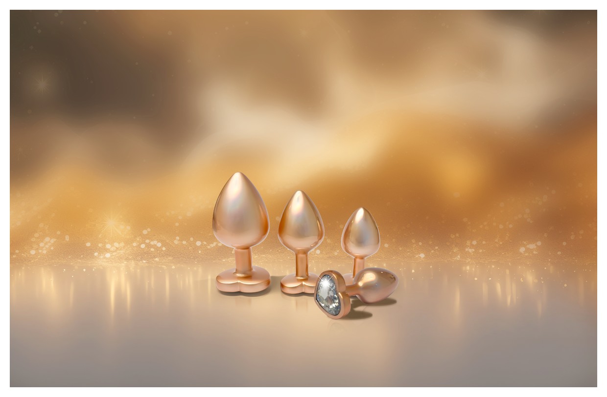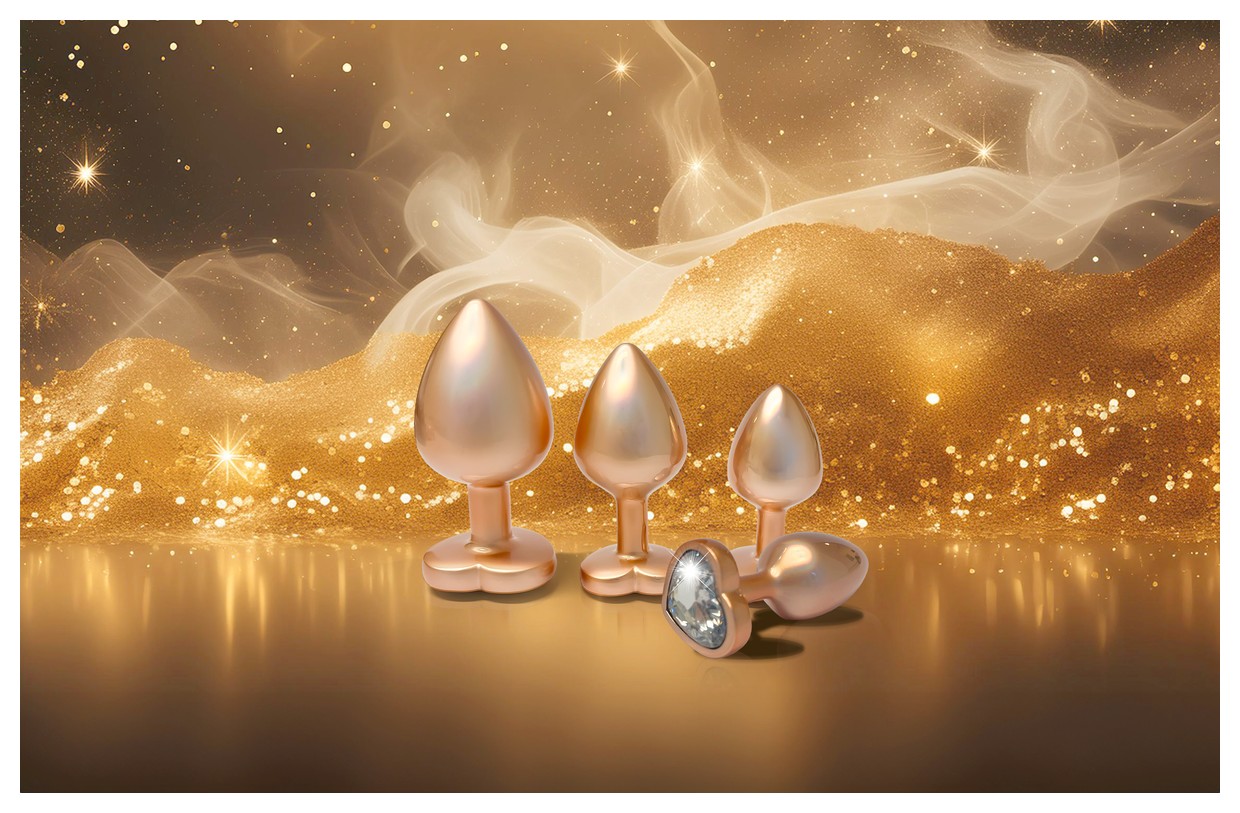 Золотистая анальная пробка с прозрачным кристаллом-сердцем Pearl Gold Plug Small.