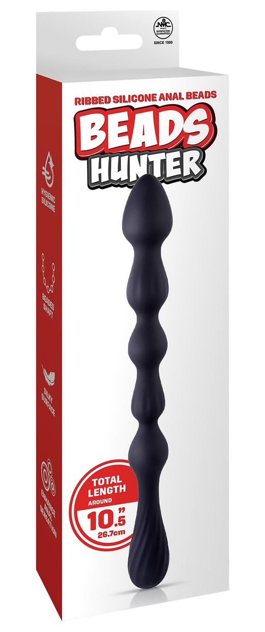 Черная анальная цепочка Hunter Beads. Выполнена из приятного на ощупь силикона.