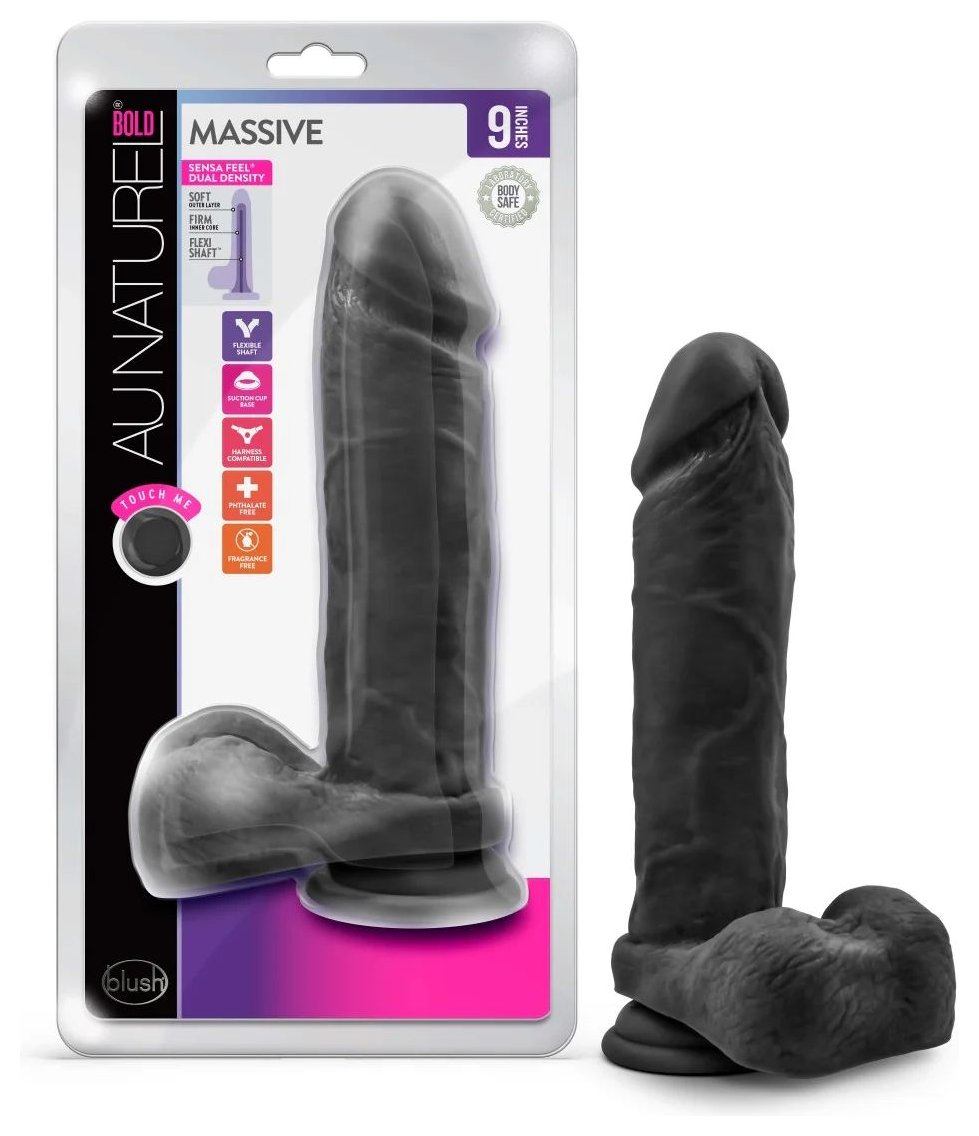Черный фаллоимитатор на присоске Massive. Приятный на ощупь. Рабочая длина - 19 см.