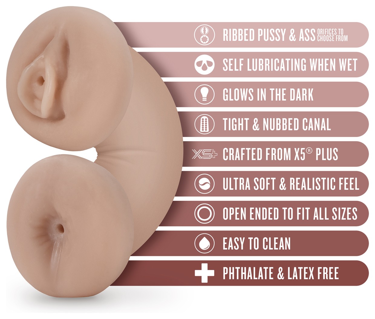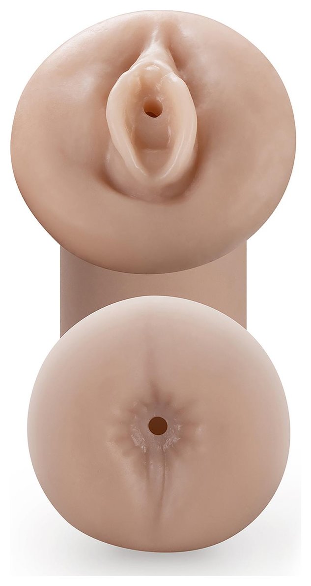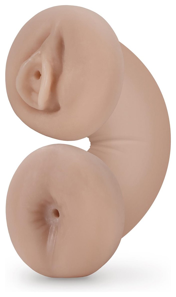 Телесный люминесцентный двусторонний мастурбатор Tasha. Реалистичный на ощупь, с тугим рельефным тоннелем.