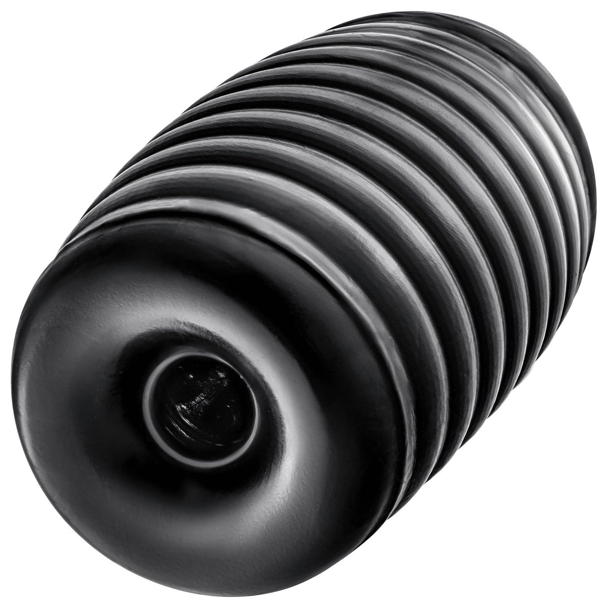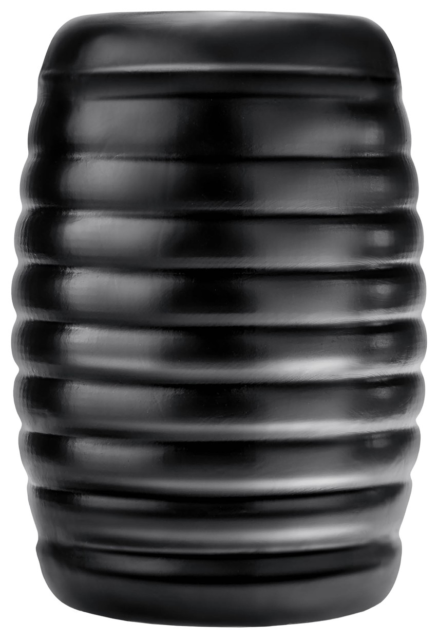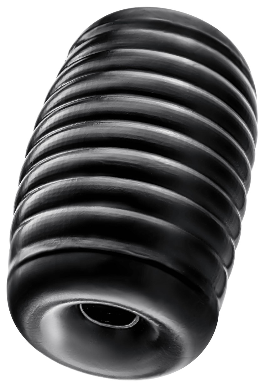 Черный мастурбатор Grasp. Сквозной, с ребрышками на поверхности.