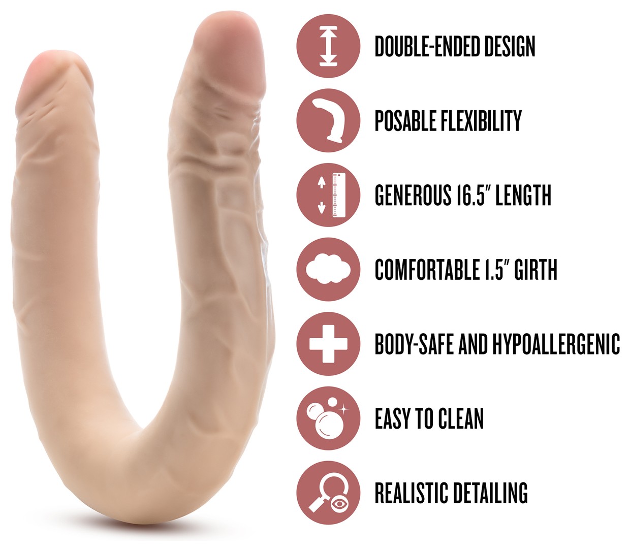 Телесный двусторонний фаллоимитатор 16.5 Inch Double Dong. Реалистичный на ощупь и гибкий.