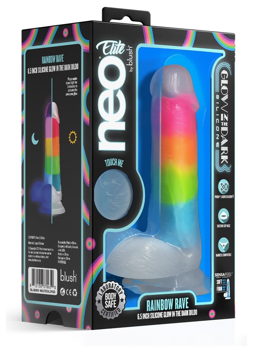 Яркий люминесцентный фаллоимитатор Rainbow Rave. С присоской в основании. Рабочая длина - 12 см.