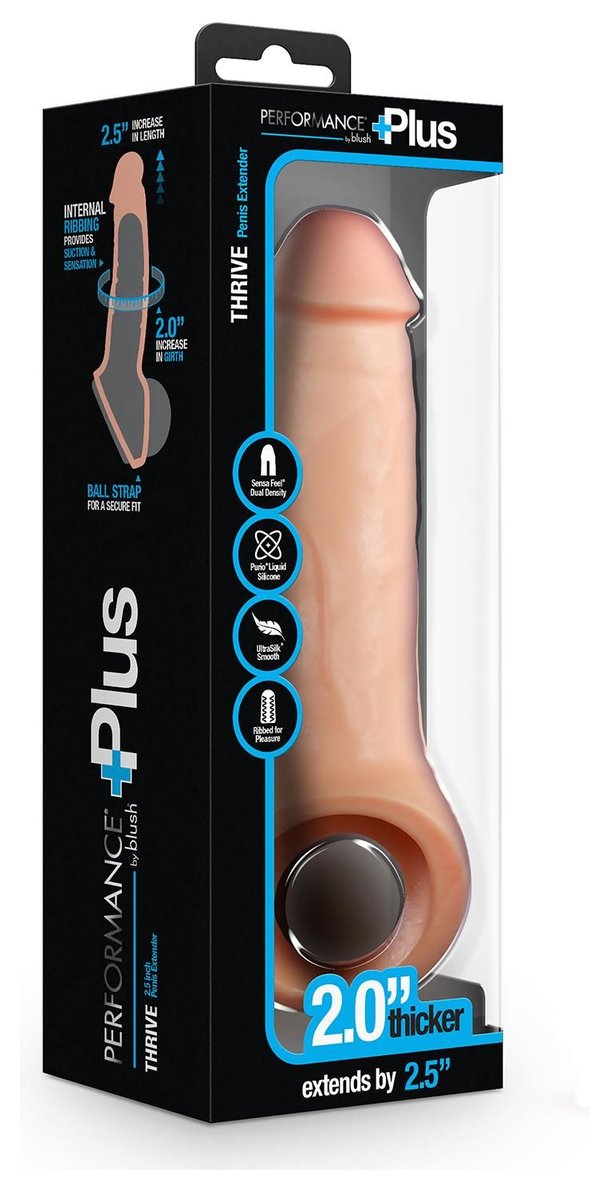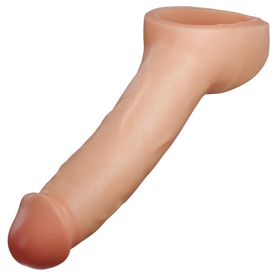 Телесная насадка-удлинитель Thrive 8.75 Inch Realistic Penis Extender Sleeve. С подхватом для мошонки. Длина полости - 9,5 см.