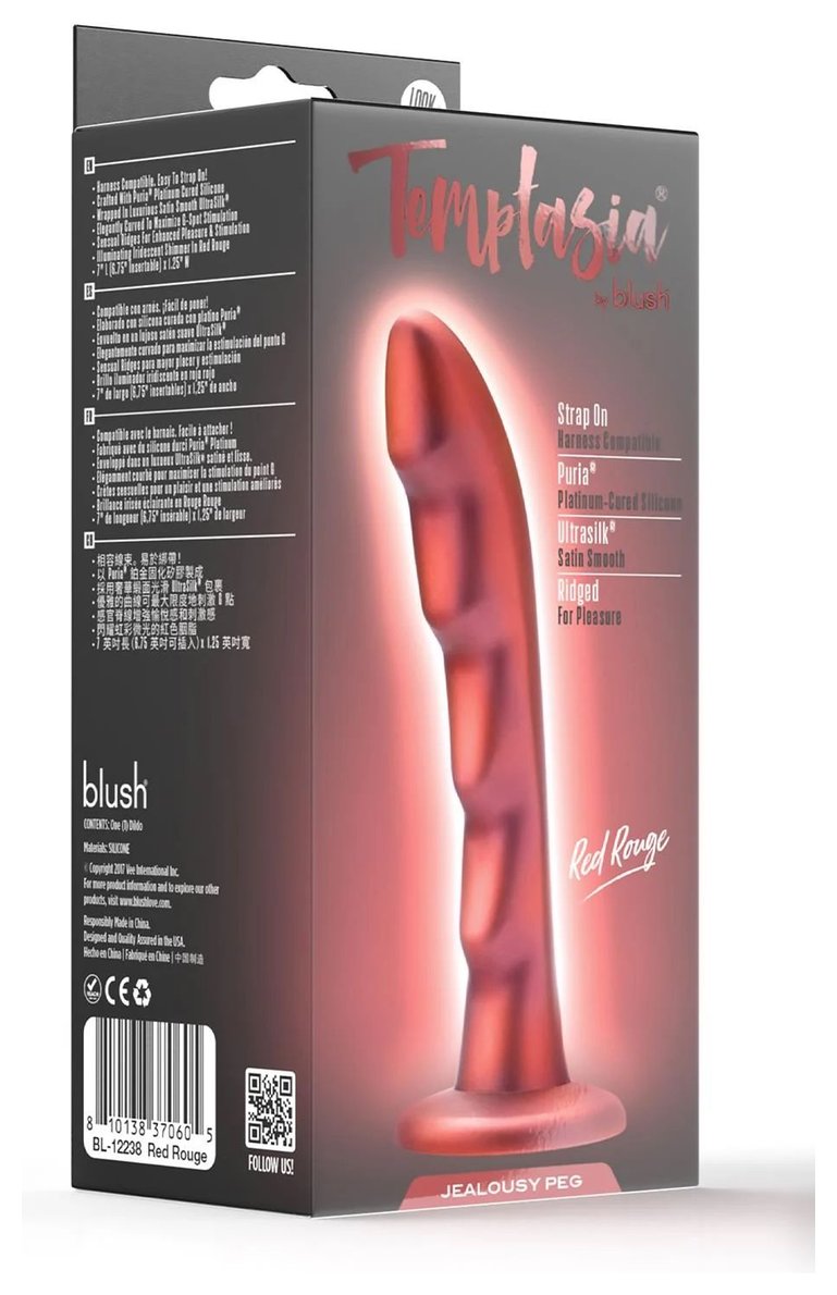 Красная насадка-фаллоимитатор Jealousy 7 Inch Pegging Dildo. Подходит для трусиков с креплением насадок кольцом или через отверстие.