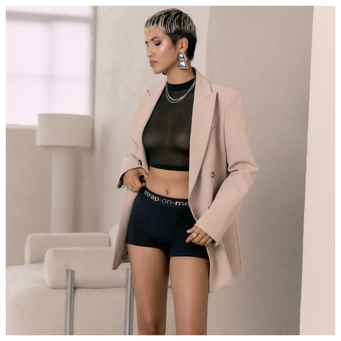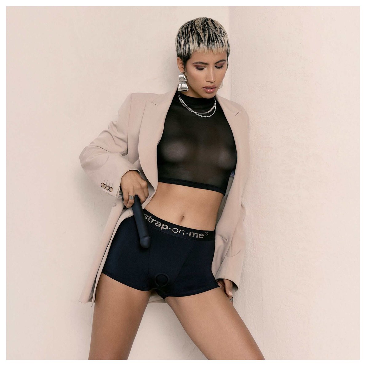 Allure — это лаконичные боксеры из стрейч-микрофибры, где каждая линия продумана. В его дизайне нет ничего лишнего: только чистые силуэты, комфорт и функциональность. Мягкая ткань повторяет изгибы тела, обеспечивая полную свободу движений. Высокая посадка мягко моделирует талию, создавая чувственный силуэт. Спереди — практически незаметное силиконовое кольцо для вашего страпона. Оно сохраняет минималистичную эстетику, оставаясь надёжным и готовым к игре. Это выбор для тех, кто ценит ясность формы, качество материалов и эстетику, которая работает на вас — без лишних деталей.