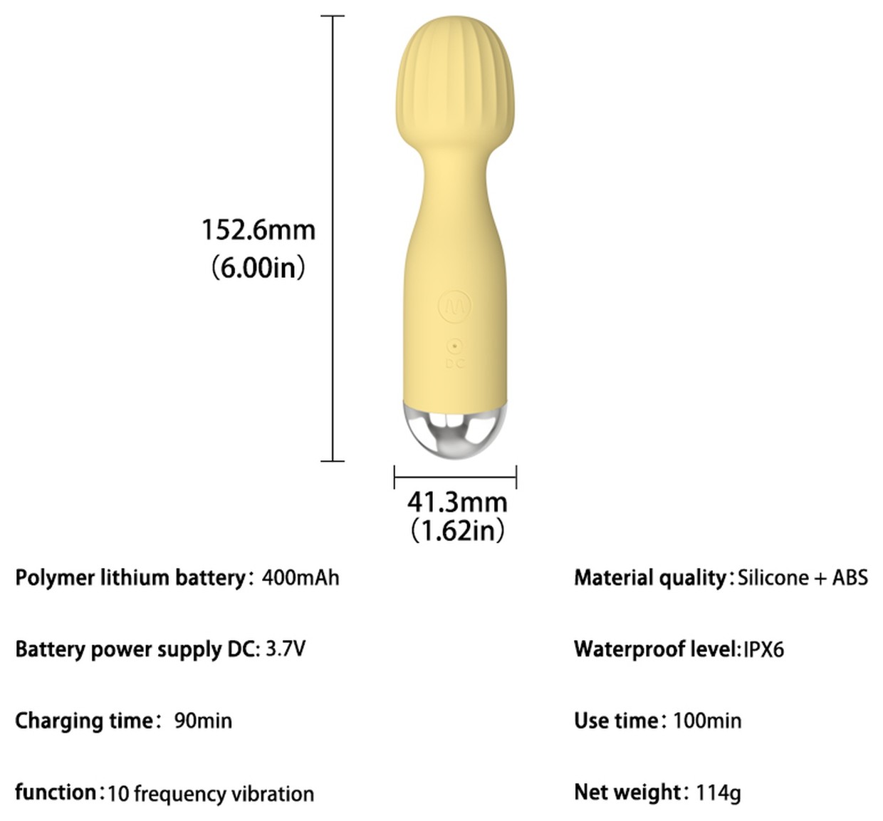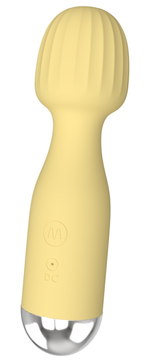 Желтый мини-вибратор с мягкой текстурой. С 10 различными вибрационными режимами и с кабелем зарядки USB.