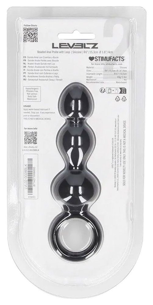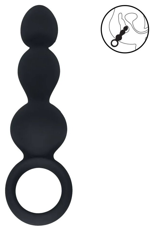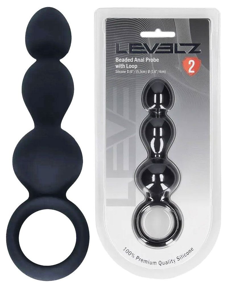 Черная анальная елочка Beaded Silicone Anal Probe with Loop