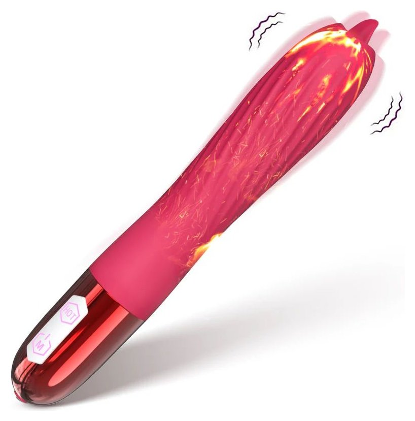 Розовый вибратор с функцией нагрева и подвижным язычком - 18 см